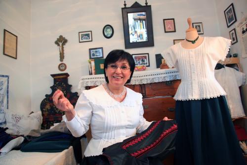 Fehér Jánosné Vincze Irén – Ircsi – meseszép viseletben fogad. Ha megjelenik valahol kabátkájában, mindig megkérdezik tőle, honnan van még neki ebből a manapság hiánycikknek számító anyagból.