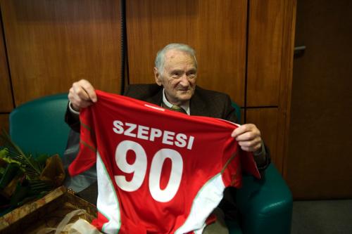 Szepesi György – nekem Gyuri – éppen ma megérte a kilencvenet is. Ma már nem hallani őt a rádióban, nem látni a tévében, hacsak archív anyagok után nem kutat az ember. Ettől azonban még nálánál fürgébb neje mellett szorgalmasan és takarékosan szedi a lábát: látom őt néhanap a budai bevásárlóközpontok egyikében, ahol ebédelni szokott, és a kezében mindig ott a Nemzeti Sport. Lám, nem könnyű elszakadni egy tápláléktól, ha romlik is az íze. Alighanem Gyuri mást is olvas, mert udvarias ember lévén mindig gratulál az írásaimhoz. Amelyek ritkán szólnak sportról. Ha mímeli is az örömöt, amit eme apróságok olvasása fölött érez, jólesik persze, végtére is elég dolga volt életében újságokkal. Csak épp nem tudom viszonozni a bókjait. Szívesen mondanám, hogy Gyuri, óriási volt, amit a magyar–angolon produkáltál, de hát ez neki épp úgy emlék, mint nekem.
