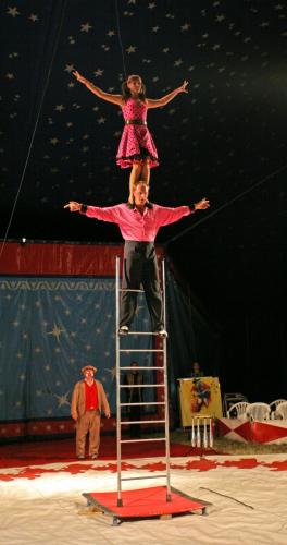 A világjáró típusnak ez talán furcsa, pedig az állandóság éppolyan érdekes lehet, mint a változatosság. Egyáltalán: biztos, hogy a nyaralásnak érdekesnek kell lennie? Annyi jó van az érdekességen kívül is. Minket speciel az egyformaság gyönyörködtet. Miért ne? Ráadásul közel van, és olcsó. Persze Szigligeten sem mindig minden ugyanaz. Tavaly például nem járt vándorcirkusz a faluban, idén járt. Megnéztük. Sőt már reggel ott kíváncsiskodtunk, hogyan állítják föl a valaha szebb napokat látott sátrat, hogyan látják el az állatokat, a tevéket, lámákat, pónilovakat, kiskutyákat. Elárulom, ez engem jobban megragadott, mint maga a produkció. Pedig többnyire kedves, ügyes pályakezdő fiatalok, olykor gyerekek dolgoztak este a porondon, meg fénykorukon már túl lévő artisták, zsonglőrök, késdobálók, állatidomárok. Akik még lehetnek valakik, s akik már voltak valakik. Az efféle cirkuszoknak már nincsenek világszámaik, óriási szenzációik, nincsenek legek, a világ legerősebb, leggyorsabb, legügyesebb emberei már régen a profi sportban találhatók, a bohócok sem mulattatnak, tulajdonképpen ki is mentek a divatból, aki még megmaradt, az a jóval jövedelmezőbb közéletben helyezkedett el. Ez a cirkusz a szó szoros értelmében egy család. Sőt dinasztia, híres, régi. Nagypapa, nagymama, vejek, menyek, nagybácsik, nagynénik, testvérek, unokatestvérek. Ebből élnek, és ez az életük. Ilyenkor nyáron körbejárják a Balatont, s többnyire fél- meg negyed házak előtt játszanak – első este nyolcvanan voltunk, kb. 4-500-an férnének be. Valami kis pluszbevételt hoz az üdítő, a vattacukor, meg ami a pónilovaglásból még bejön. Mindez együtt is kevés bevételt jelent, ami nagyon szerény életvitelt tesz csak lehetővé (egyik este a „főnök” nagyon dühösen még szinte a közönség füle hallatára teremtette le a stábot, mert előadás közben valaki a lakókocsiban égve hagyta a villanyt). A család mindenben önellátó, állami támogatást nem kapnak – bár aki manapság nem kap, az inkább jól jár, mert nem érinti az elvonás. És önellátók a humánerőforrás-előállításban és a munkahelyteremtésben is. Aki ebbe a családba születik, az biztosan cirkuszos lesz. Hamar kiderül, mihez van tehetsége, az idősebbek megtanítják neki az alapokat, aztán begyakorol egy számot, s tízévesen már föllép, mint itt egy kislány a temérdek hulahoppkarikával. Nem járnak artistaiskolába sem, ott egyébként az a mondás járja: nem is kell, amit az iskolában tanulhatnának, azt ennek a dinasztiának a tagjai már úgy is tudják. Mégis az volt az érzésem, az efféle cirkuszok fölött eljárt az idő.