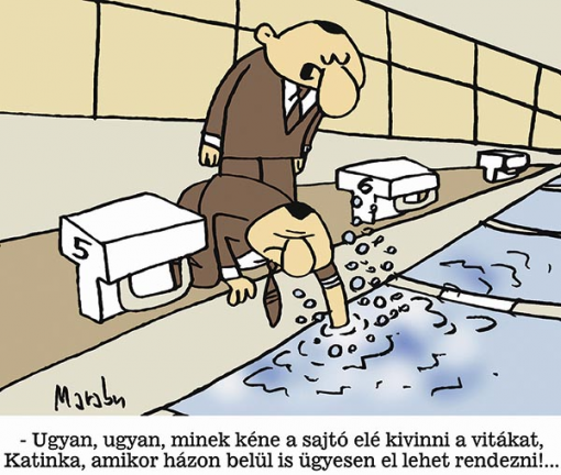– Ugyan, ugyan, minek kéne a sajtó elé kivinni a vitákat, Katinka, amikor házon belül is ügyesen el lehet rendezni!