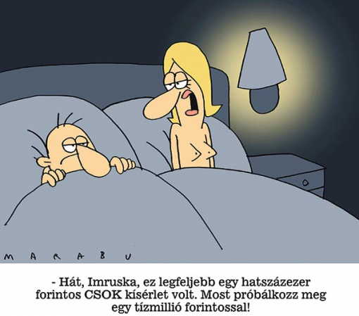 – Hát, Imruska, ez legfeljebb egy hatszázezer forintos CSOK-kísérlet volt. Most próbálkozz meg egy tízmillió forintossal!