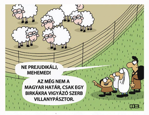 - NE PREJUDIKÁLJ, MEHEMED! AZ MÉG NEM A MAGYAR HATÁR, CSAK EGY BIRKÁKRA VIGYÁZÓ SZERB VILLANYPÁSZTOR!