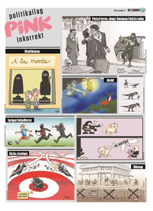 Hagyományos PINK rovatunk NO COMMENT címmel jelent meg, ezúttal kizárólag karikatúrákkal. Saját karikaturistáink - MARABU és WEISZ BÉLA - mellett külföldi lapokból válogattunk - a friss, november 21-én megjelent VH 7. oldalán.