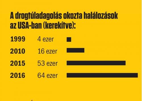 Megdöbbentő statisztikai tény, hogy az 50 évnél fiatalabb amerikaiak között ma már a drogtúladagolás a leggyakoribb halálozási ok, az esetek kétharmadát opioid vegyületek (lásd keretes írásunkat) okozzák. Naponta átlagosan 175-en halnak meg az óverdózis miatt az Egyesült Államokban; többen, mint közlekedési balesetben, lőfegyver-használat következtében vagy AIDS-ben. Még elképesztőbb összehasonlítás, hogy tavaly több halálos áldozatot szedett a drogjárvány, mint a vietnami háború két évtized alatt az amerikai katonák között (a hivatalos források szerint: 58 318). A szövetségi járványügyi hatóság, a CDC igazgatója, Thomas Frieden úgy fogalmazott: Amerikát „elárasztották az opioidok”. Becslések szerint 2,6 millióan szenvednek függőségtől. A tipikus addikt középkorú, fehér, (lecsúszó) középosztálybeli férfi, de vannak függők minden korosztályban, minden társadalmi rétegben, a hatalmas ország minden részén.