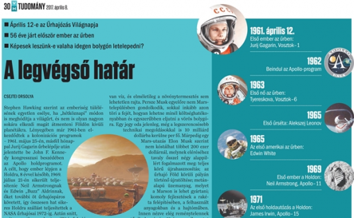 A célt, hogy ember lépjen a Holdra, 8 évvel később, 1969. július 21-én sikerült teljesítenie Neil Armstrongnak és Edwin „Buzz” Aldrinnak, őket további öt űrhajóspáros követett, így összesen hat sikeres Holdra szállást teljesítettek a NASA űrhajósai 1972-ig. Aztán snitt, azóta egyetlen embert szállító űrhajó sem hagyta el az alacsony Föld körüli pályát. Aki megy, csak az ott keringő Nemzetközi Űrállomásig (ISS) jut.
