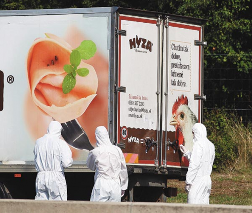 71 holttestet – közöttük 8 nőét és 4 gyerekét – találtak meg az osztrák rendőrök abban a magyar rendszámú teherautóban, amelyet embercsempészek hagytak a magyar határtól 30 km-re az osztrák A4-es autópálya mellett. Az ügy hátterében egy bolgár–magyar embercsempész- hálózat állhat az osztrák rendőrség szerint. A Nemzeti Nyomozó Iroda (NNI) közleménye állítja: három bolgár és egy afgán állampolgárt vettek őrizetbe, magyar nem volt köztük. Az osztrák fél viszont két bolgár és egy magyar személyi igazolvánnyal rendelkező férfi letartóztatásáról beszélt.