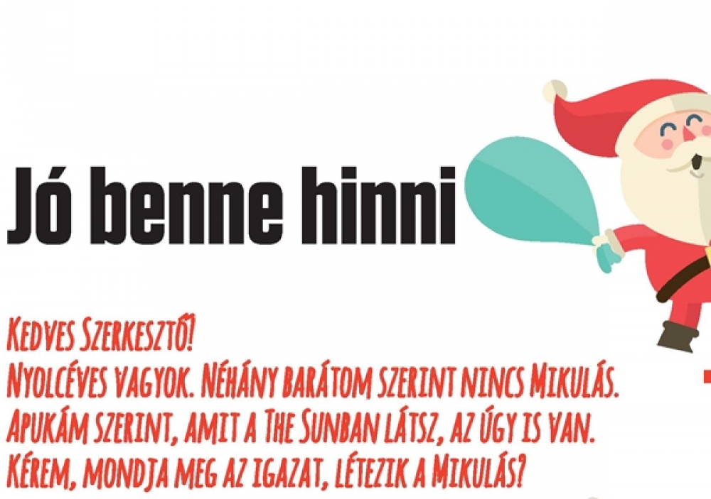 Jó benne hinni. "KEDVES SZERKESZTŐ! NYOLCÉVES VAGYOK. NÉHÁNY BARÁTOM SZERINT NINCS MIKULÁS. APUKÁM SZERINT, AMIT A THE SUNBAN LÁTSZ, AZ ÚGY IS VAN. KÉREM, MONDJA MEG AZ IGAZAT, LÉTEZIK A MIKULÁS?"