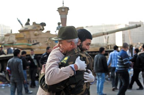 Catherine Ashton, az EU külpolitikai főképviselője, Ban Ki Mun ENSZ-főtitkár és számos vezető örömét fejezte ki, s a demokratikus intézményrendszer mihamarabbi megteremtését sürgették. De az ideiglenes hatalom a hadsereg kezében van, ami sokakat aggaszt, ugyanis 1952 óta – mióta Gamal Abden-Nasszer puccsal megdöntötte a királyságot – az ország vezetői mindig a katonaságból kerültek ki, és az elmúlt harminc évben is a Mubarak-rezsim támogatói voltak. A vezérkar legmagasabb rangú tisztje a 75 éves Mohamed Husszein Tantavi vezérezredes, akit esélyesnek tartanak arra, hogy átvegye a hatalmat, mert jól ismeri a rendszert és nagyon tapasztalt. De a korábbi védelmi miniszter köztudottan ellenzi a demokratikus átalakulást, és sokan Mubarak árnyékának tartják. Ha mégis a nyugati normáknak megfelelő elnökválasztásokat tartanának, ketten lennének esélyesek.