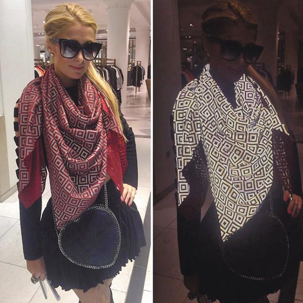 A vakufénytől mindent „láthatatlanná tesz” az ISHU divatcég antipaparazzo sálja, amit többek közt Paris Hilton is használ már.