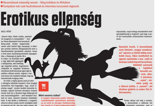 De mi is történt egy szombati boszorkánytalálkozón? Fekete mise és swinger party – a démonológiai traktátusok és az erotikus fantázia kimeríthetetlennek bizonyultak a boszorkányperek vádiratainak érzékletes leírásaiban, amiket persze a megkínzott vádlottak „igazoltak”. A sámánisztikus lélekutazás beszüremkedéseként seprűlovaglással indítottak, aztán a macska, fekete kutya, netán fekete férfi (néger) alakban jelen lévő démonfamulusokkal való varázslás afféle pettingnek volt tekinthető, mígnem a 15. századtól az orgia került a középpontba: a trónon ülő ördög parancsára, apa a lányával, fiú az anyjával, fivér a húgával stb. keveredett nemi kapcsolatba, majd mintegy levezetésként némi gyerekgyilkosság is megesett, csak hogy a porrá tört csontocskák varázsszerként hasznosuljanak.