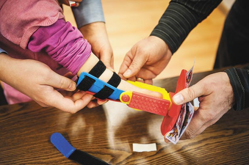 Réka kétféle protézist is kap. Az egyik – amit ottjártunkkor vehetett birtokba – az úgynevezett utility (speciális célokra használható) kéz. Lesz majd egy másik is, amelyik könyökkel, felkarral működik.