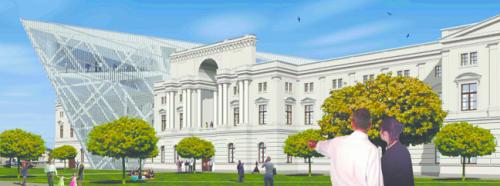 A múzeum gazdája a szövetségi Védelmi Minisztérium elfogadta azt az érvet, hogy az új szellemű kiállításhoz a múzeumépület megújítása is szükséges. A tervezéssel és a kivitelezéssel Daniel Libeskind amerikai építészt bízták meg. Libeskind szülei lengyel zsidók, az ottani holokauszt elől elmenekülve a következő éveket egy szovjet munkatáborban élték túl, 1957-ben Izraelbe, onnan az Egyesült Államokba emigráltak. A többszörösen díjazott építész tervezte az elpusztított New York-i toronyházak helyszínén emelt Ground Zero emlékművet is. A drezdai új épületegység acél-üveg konstrukció, mintegy beékelődik a régi szász arzenálba, tervezője szavaival megkérdőjelezve a történelem kontinuitását. Az új konstrukció szerint ott, akár a világhírű New York-i Guggenheim Múzeumban, a látogató útja felülről kezdődik majd, és visz egyre mélyebbre lejjebb. A tető alatt kialakított helyiségben kapott helyet A Valkűr hadművelet című film (rend. Jo Baier) „Hitler bunkere”, a sikertelen Stauffenberg-merénylet színhelye.
