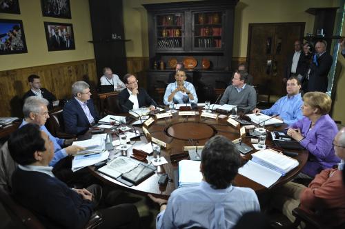 Első találkozásuk dacára hamar egymásra talált Barack Obama amerikai és François Hollande francia elnök a csúcsértekezletén: egyesült erővel győzködték Angela Merkel német kancellárt az új irány fontosságáról. Így Merkel egyedül maradt a másik hét ország – az USA, Nagy-Britannia, Franciaország, Olaszország, Japán, Kanada és Oroszország – vezetőivel szemben, ám ahogy David Cameron brit kormányfő fogalmazott, „a G8-ak nem mondhatják meg az eurózónának, mit csináljon”. Ehhez kapcsolódott a csúcstalálkozó másik fontos kérdése a görög válság. José Manuel Barroso, az Európai Bizottság elnöke kijelentette, szeretnék, ha Athén az eurózónában maradna, és arra számít, hogy Görögország teljesíti a „mentőcsomag” feltételeit. Barroso azt állította, hogy nincsen B tervük arra az esetre, ha Görögország elhagyja a közös valutát, de ennek megakadályozására Athén kedvezőbb feltételeket kaphat.