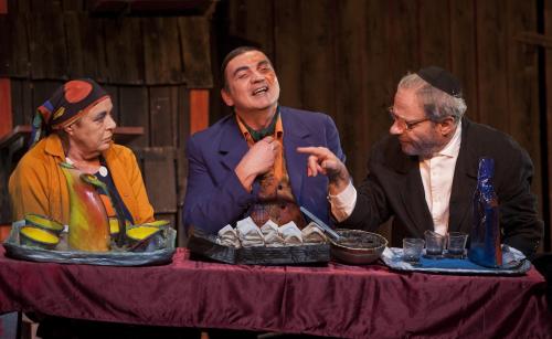 A darab végén a rabbi egy gyönyörű képben legitimálja a hatalomátvételt, amely mintha az utolsó vacsora karikatúrája lenne. A drámát derűs jiddis humor lengi át, ami a legtragikusabb pillanatokban is kárörvendezve tud nevetni önmagán: mindez balladisztikus jelleggel bővül. A lírikus hangvételt jól érzékelteti a Vodku klezmerzenéje és az erőteljes (chagalli) képi világ, ami folyamatosan elemeli a hétköznapi létezést, és szürrealisztikus színezettel vonja be azt. Ennek a világnak legtökéletesebb megtestesítője Bálint András templomszolgája, aki a tudás emberének szerénységével próbál meg rendet teremteni a tohuvabohuban, de mindhiába; valamint a ruhakereskedő Csankó Zoltán, aki lánykérőbe érkezik, és kiköpött mása a Móricz Zsigmond Pillangójából készült tévéfilm Körmendi János által játszott suszterének. Karakterre, hiszen anyagiassága semmihez sem hasonlítható.