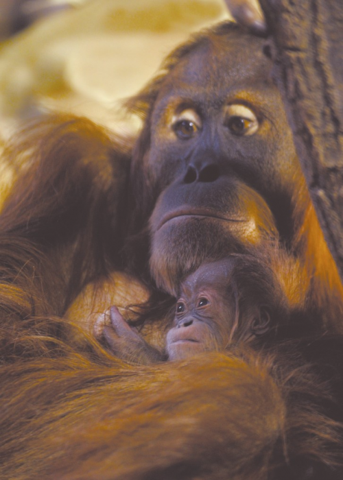 Nézzünk hát körül odabenn! A legtöbben, főleg a gyermekes famíliák a három sztárt, az emberszabású majomkölyköket keresik fel: Bongót, az egyéves gorillát, és a két orangután bébit, a féléves Moirát s az egy hónapos Vilmost.